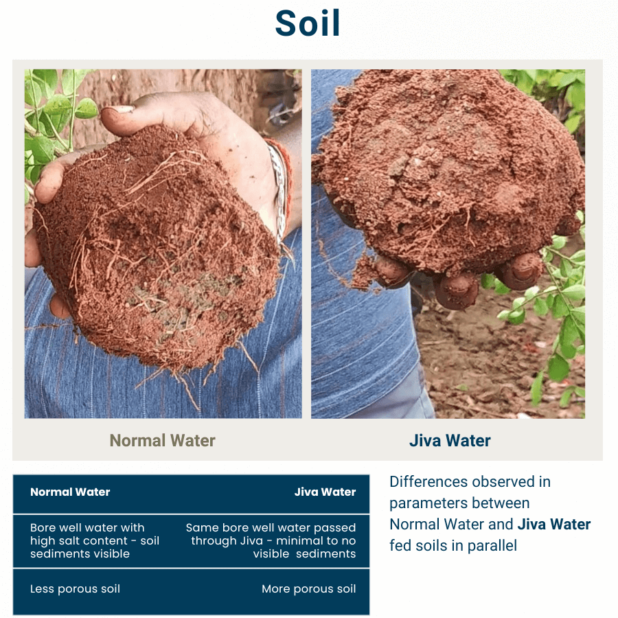 Jiva Water improves water absorption, nutrient uptake, and soil health, leading to stronger roots, healthier plants, and higher yields.